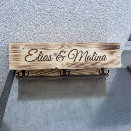 • Personalisierte Holz-Garderobe mit Namen – Wandgarderobe aus Holz – 3 oder 6 Haken – Natur oder geflammt, Kindergarderobe