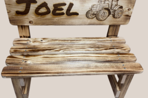 Auf der Lehne können bis zu 30 Kindernamen eingraviert werden – ideal für ganze Gruppen oder Vorschulkinder zum Abschied.