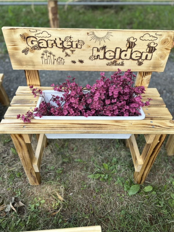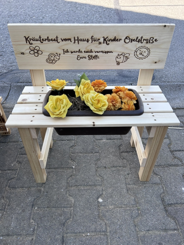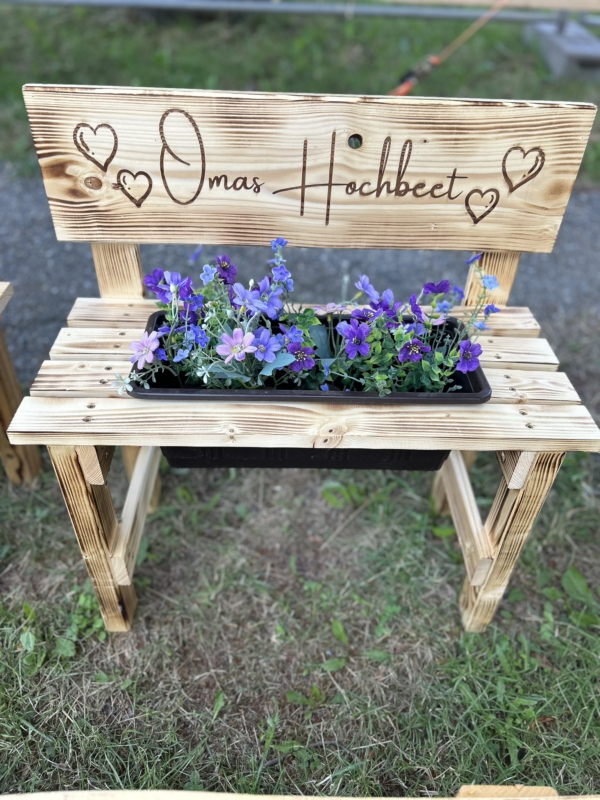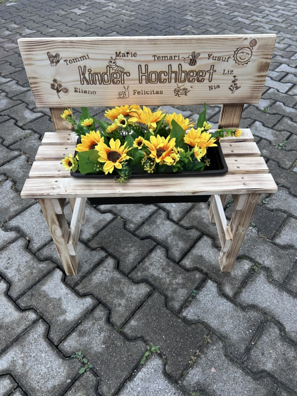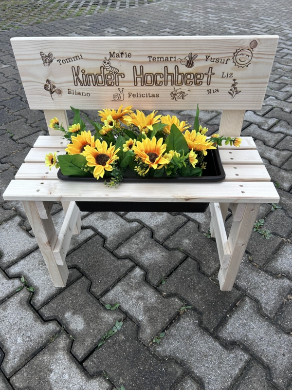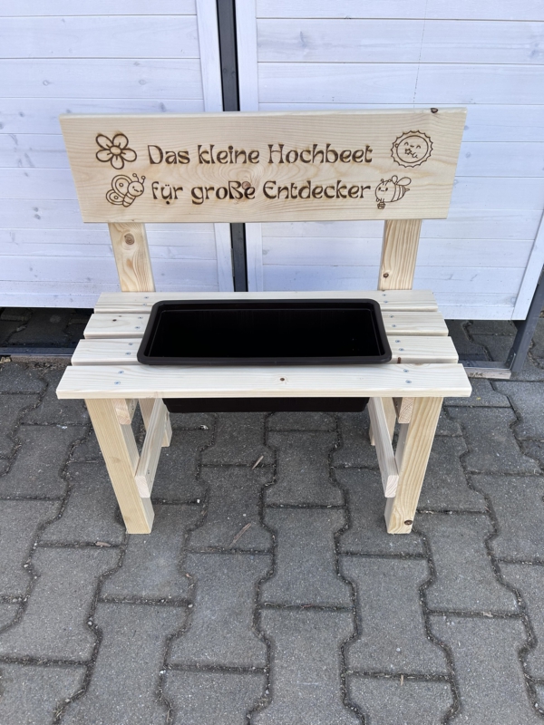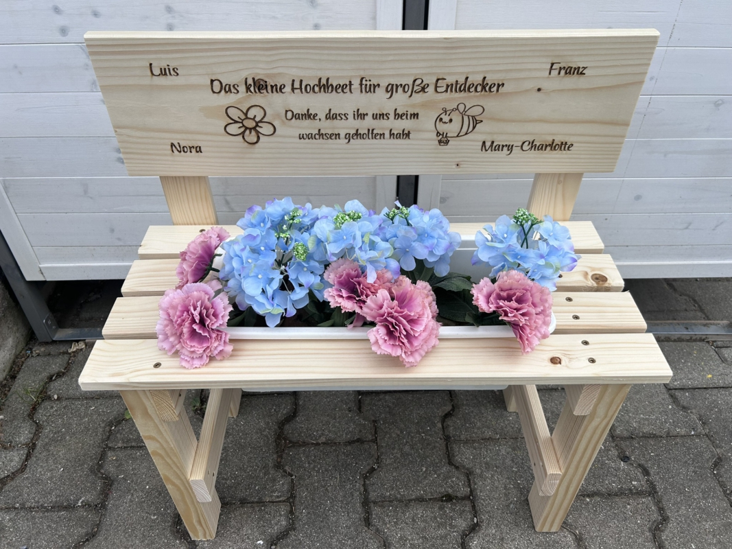 Ein besonderes Highlight: Das Hochbeet kann mit dem Namen des Kindes oder einem individuellen Motiv graviert werden – so entsteht ein einzigartiges, persönliches Geschenk mit bleibendem Wert.