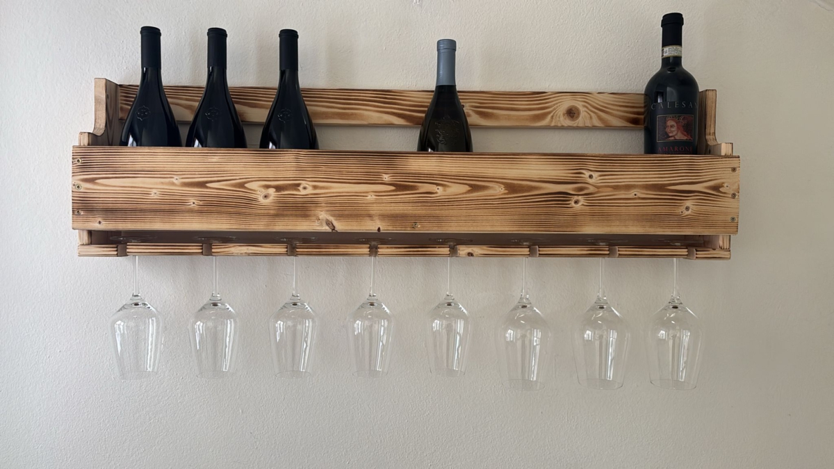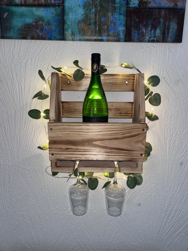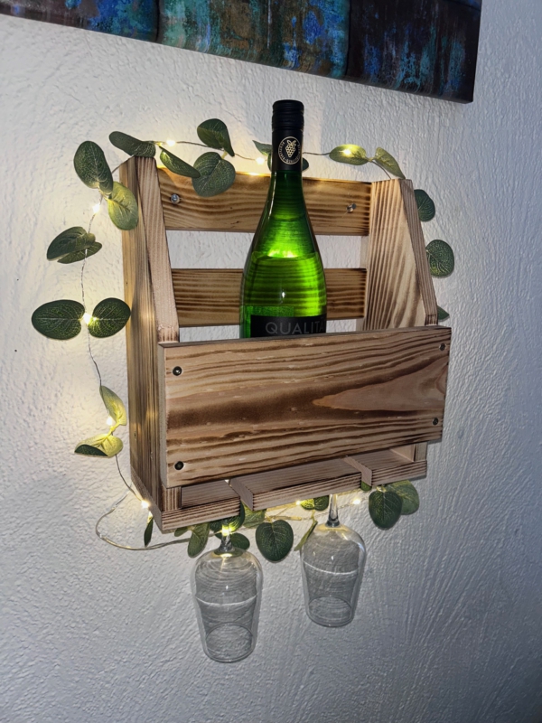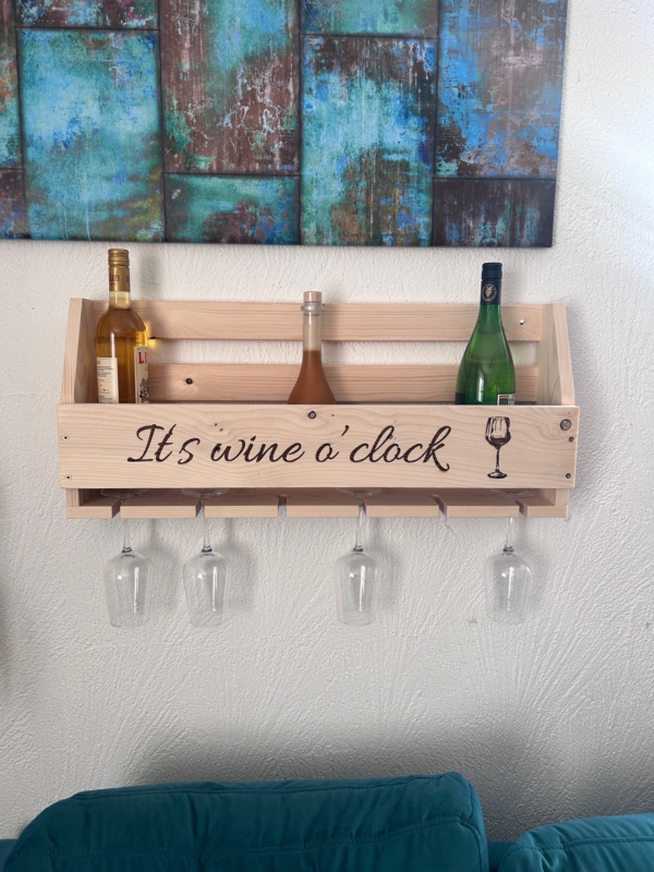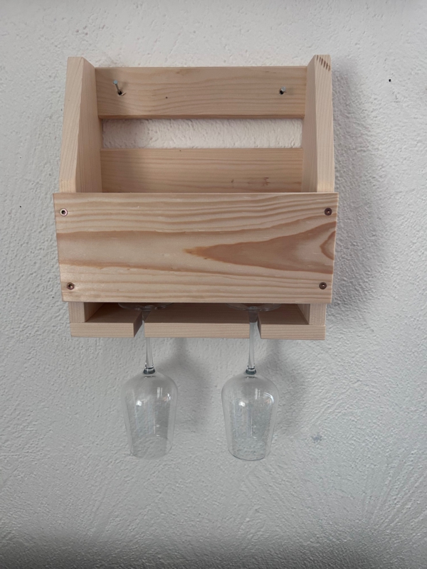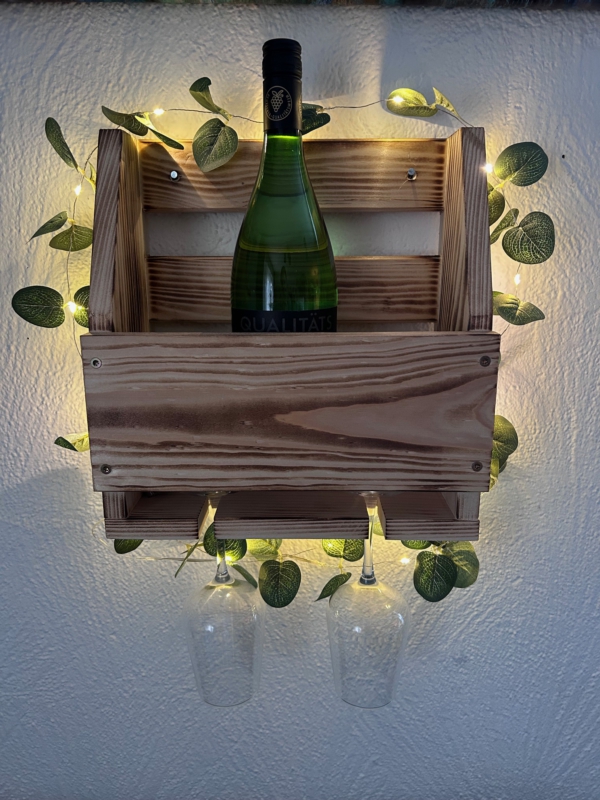 Handgefertigtes Weinregal aus Massivholz mit Glashalterung