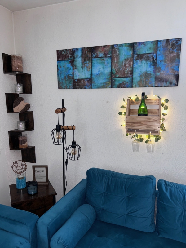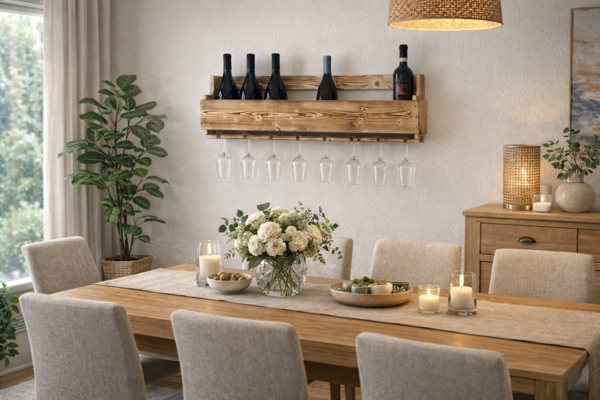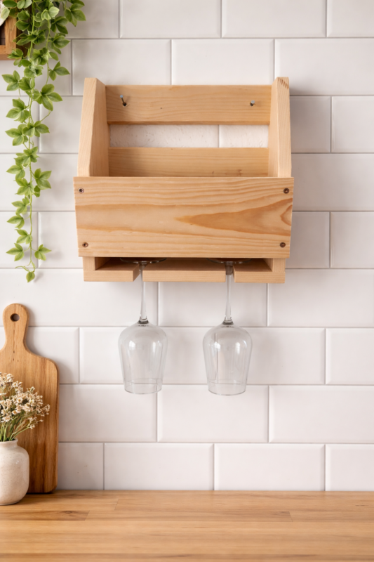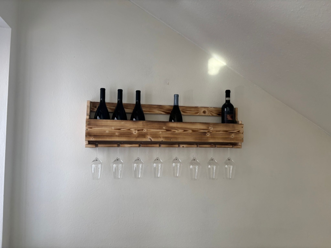 Dank der Wandmontage eignet sich das Weinregal ideal auch für kleinere Räume. Es nutzt den vorhandenen Platz optimal und sorgt gleichzeitig für Ordnung und Übersicht. Ob für den täglichen Gebrauch oder als dekoratives Element – dieses Regal erfüllt beides.