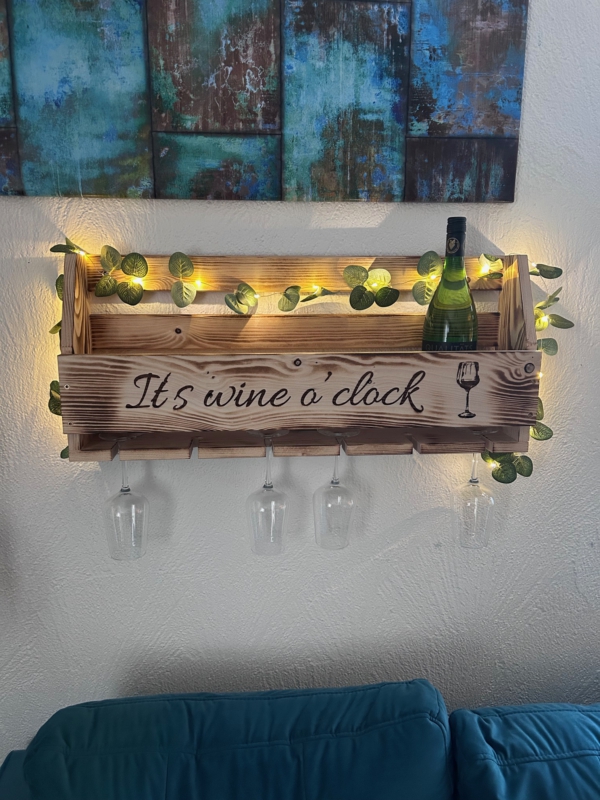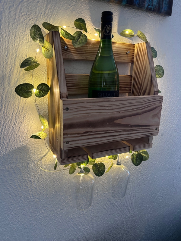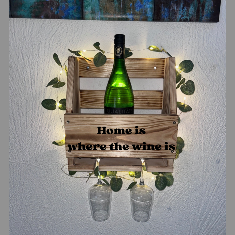 Dieses exklusive Wand-Weinregal aus massivem Holz vereint rustikales Design mit funktionaler Eleganz und wird zum stilvollen Blickfang in jeder Küche, jedem Esszimmer oder Wohnbereich. Jedes Regal wird sorgfältig gefertigt und überzeugt durch seine natürliche Holzmaserung die dem Regal einen warmen und hochwertigen Charakter verleiht. Auf Wunsch gerne mit kostenloser Personalisierung. Das Weinregal kann in hellem Naturholz bleiben oder geflammt werden.