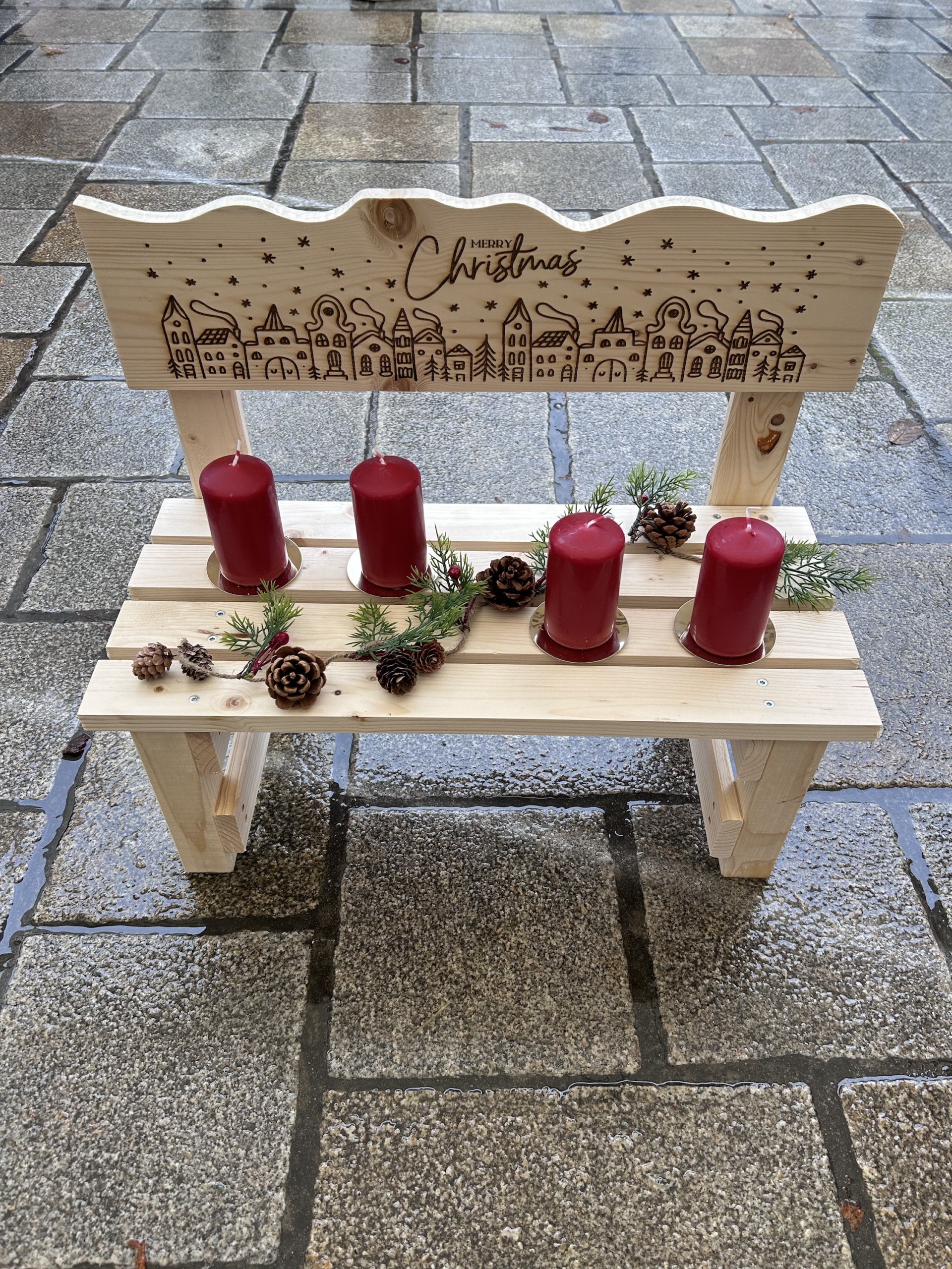 Adventsbank aus Holz – mit Platz für vier Kerzen