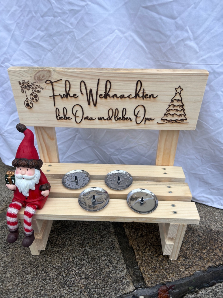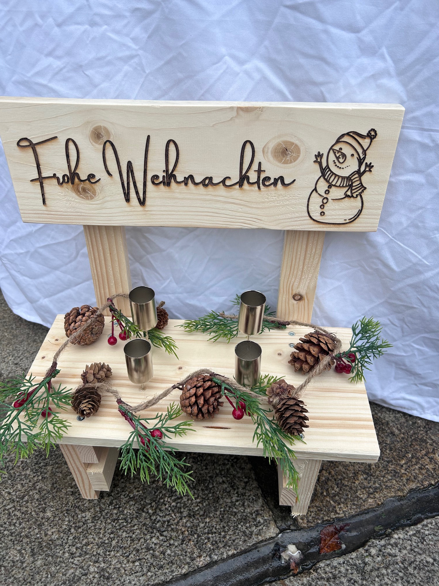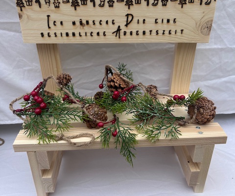 Ob als festliche Dekoration im eigenen Zuhause oder als originelles Geschenk zur Adventszeit – die Adventsbank bringt Wärme, Gemütlichkeit und eine persönliche Note in jede Weihnachtsdekoration.