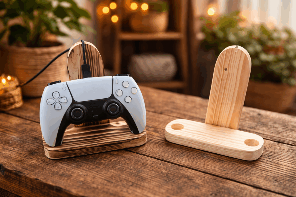 Dieser handgefertigte Game-Controller-Halter aus Holz sorgt für Ordnung und setzt deinen Gaming-Controller stilvoll in Szene. Ob auf dem Schreibtisch, im Wohnzimmer oder im Gaming-Setup – der Halter ist praktisch, dekorativ und ein echter Blickfang.