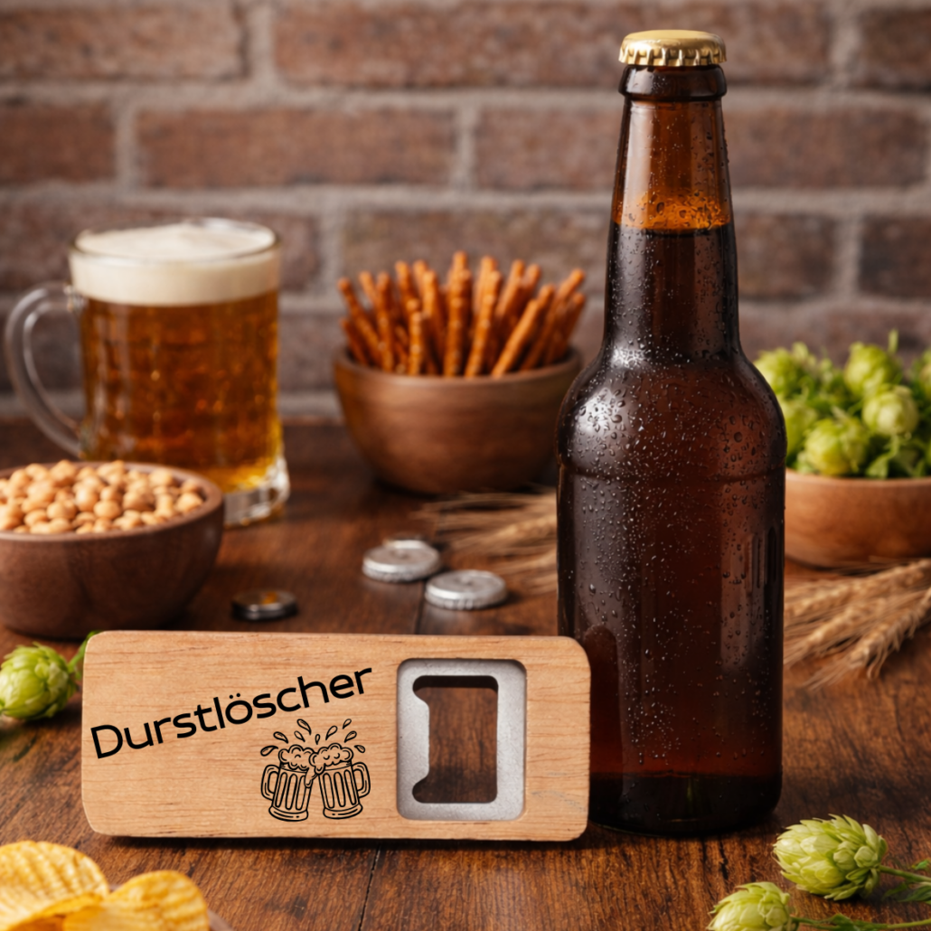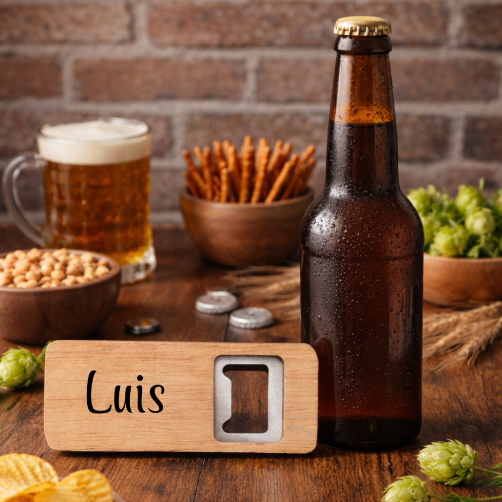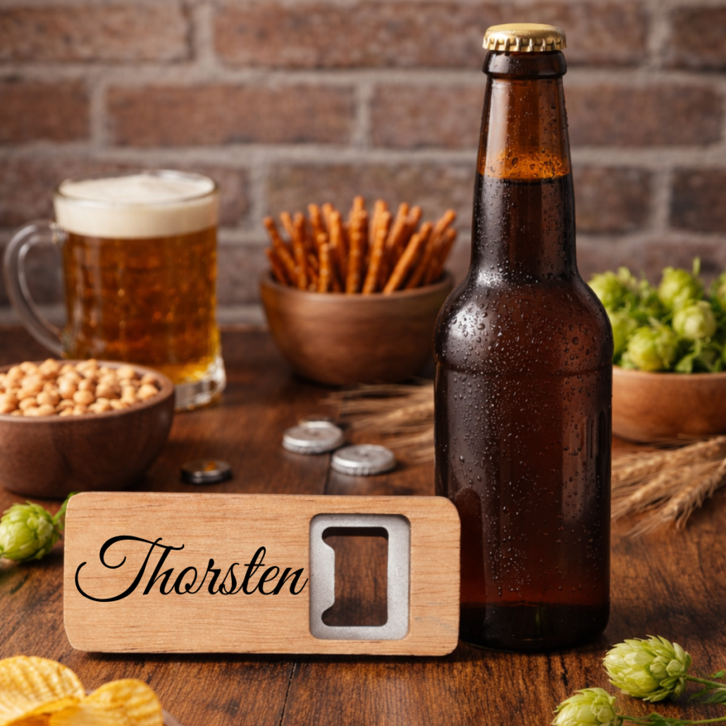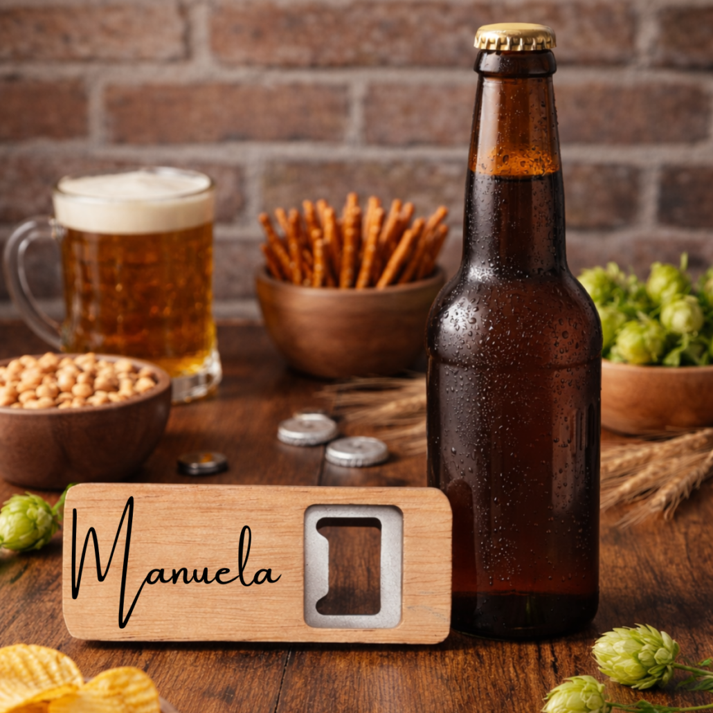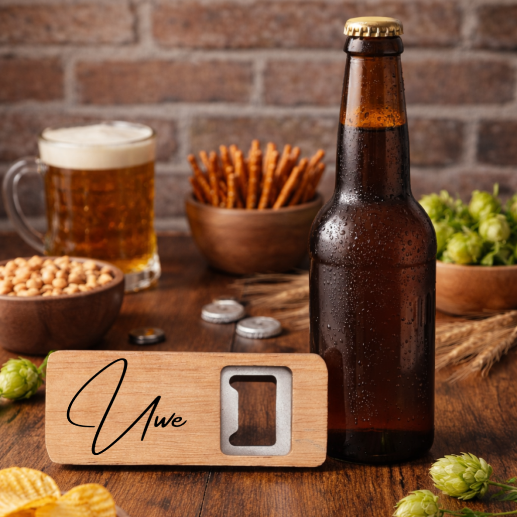 Flaschenöffner aus Holz, der individuell gestaltet und personalisiert werden kann. Ein- oder beidseitig gravierbar. Ein perfektes Geschenk für deinen Papa oder Opa, Mama, Oma oder Schwester/Tante, die Firma, deine Belegschaft, deine Angestellten. Auch Firmenlogos können graviert werden. Gerne werden die Flaschenöffner auch als Gastgeschenke bei Hochzeiten genommen.