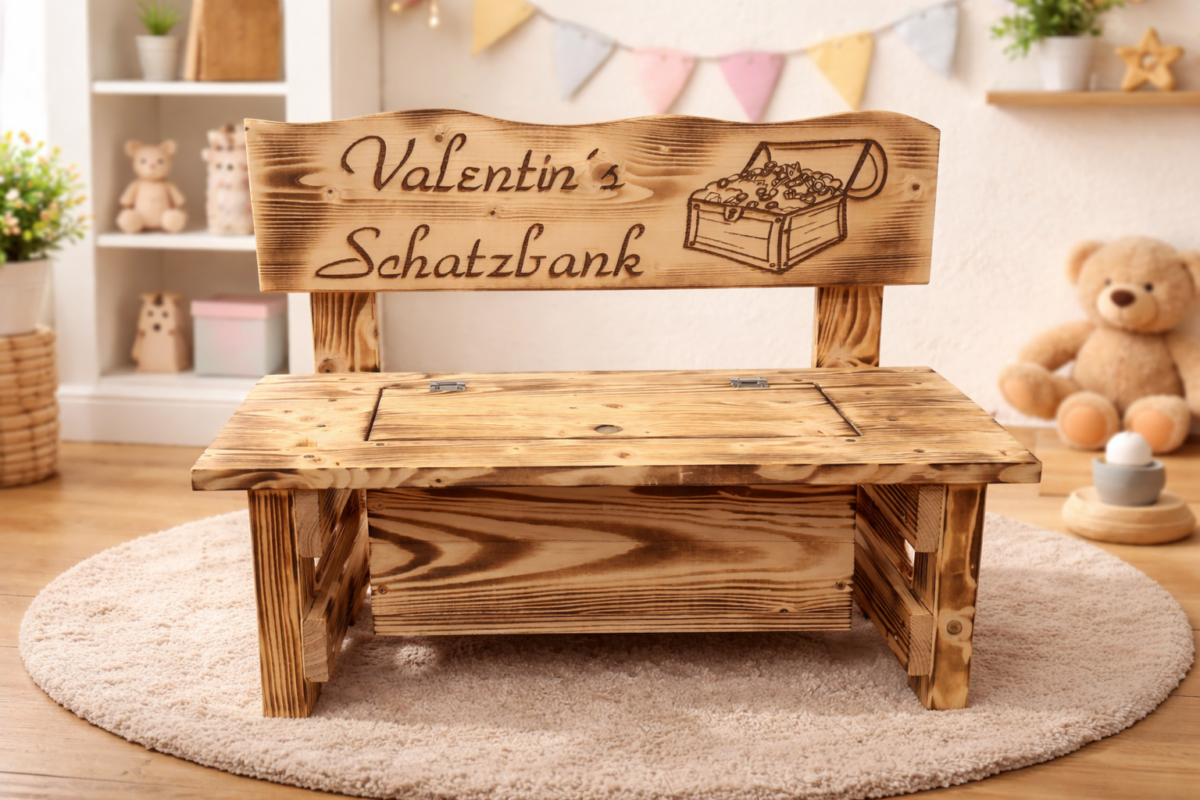 ✨ Personalisierte Kinderbank aus Holz mit Geheimfach – der perfekte Platz für kleine Schätze ✨