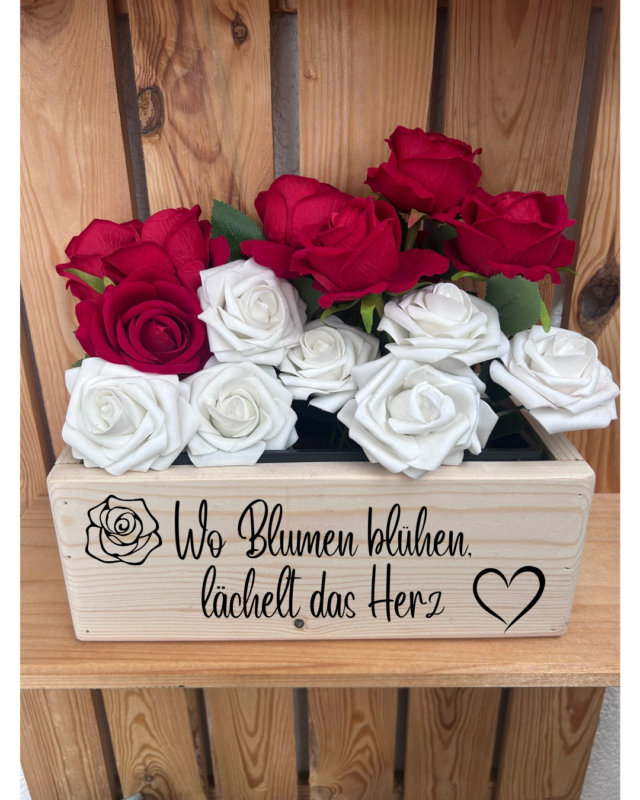 Dieser liebevoll gestaltete Blumenkasten aus Holz ist das perfekte Geschenk wenn es mal etwas persönlicher sein soll.