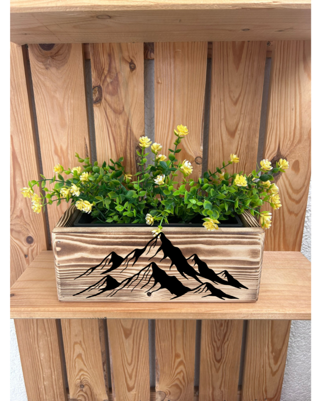 Handgefertigter Blumenkasten aus Holz (in hellem Naturholz oder geflammtes Holz)
