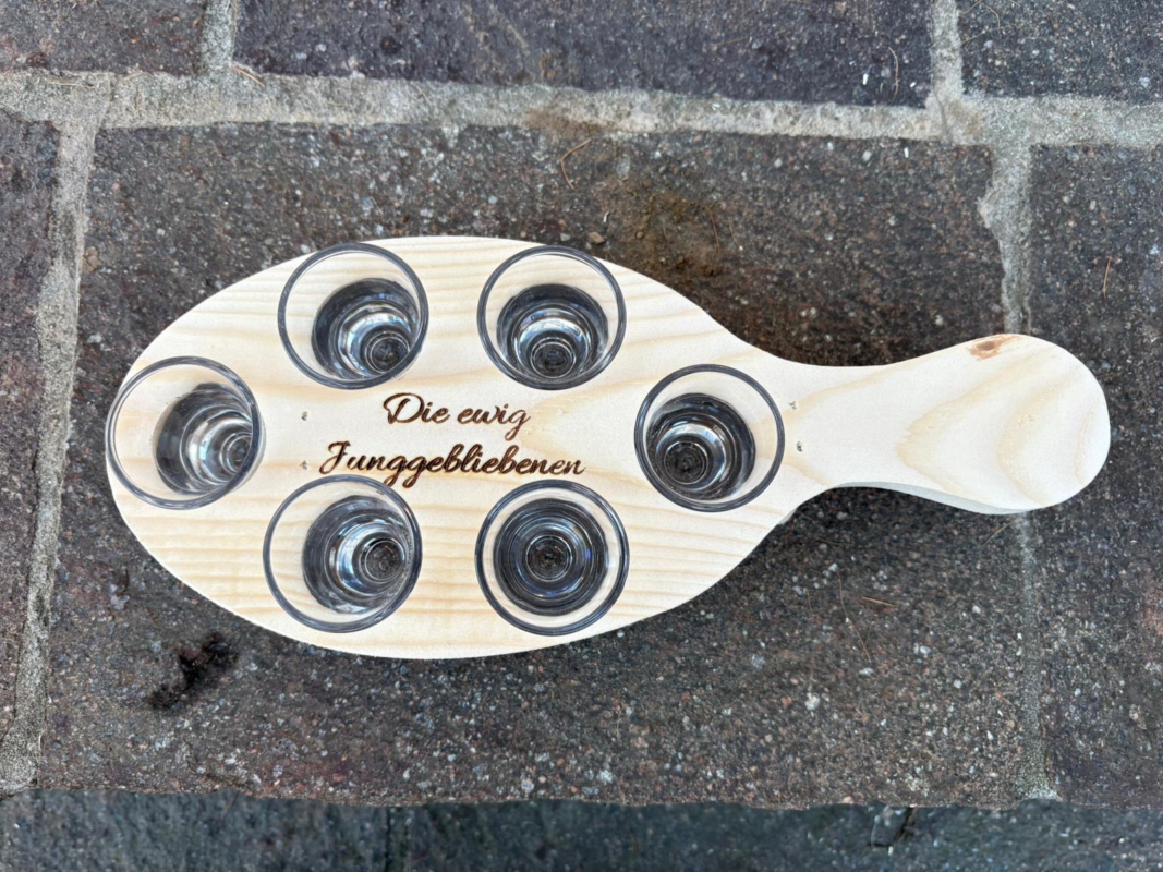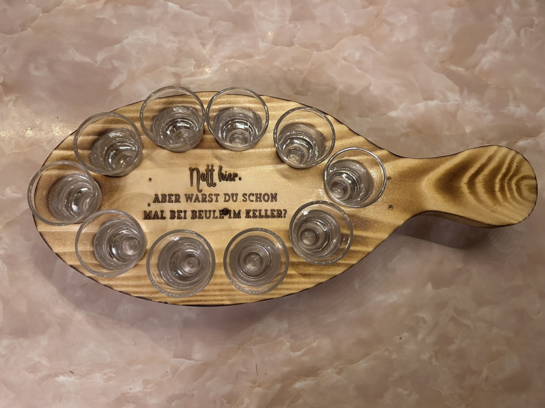 Unsere handgefertigten Schnapsbretter aus massivem Holz sind das Highlight für Party, Stammtisch oder als besonderes Geschenk.